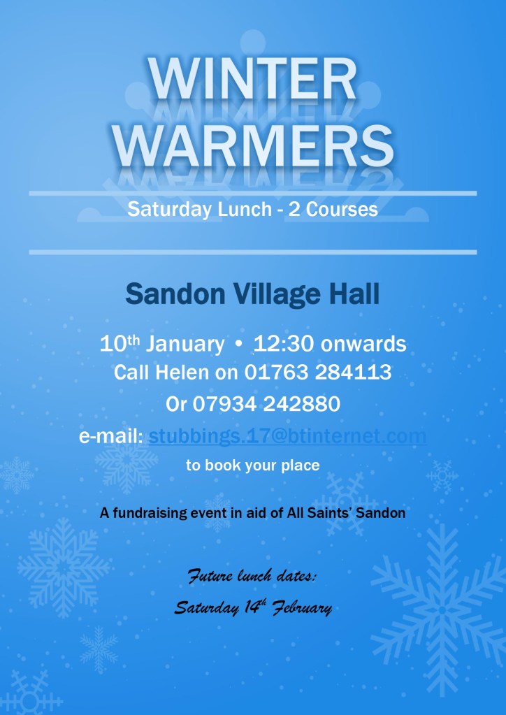 Winter Warmers Saturday Lunch – Sandon Village Hall – 10th January 2026