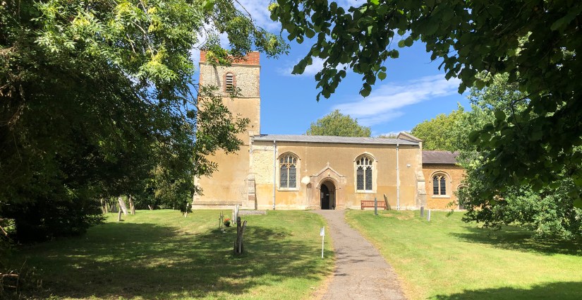 As you come up the steep hill into picturesque Rushden from Mill End you do not immediately spy the church. However,upon entering the heart of the village the church is suddenly there, perched on its own little hill and surrounded by its churchyard – flowing around the church like green skirts around a stately lady. The neat little porch with its stone benches is always a welcome haven from heat or cold and beautifully decorated for major seasonal services. The Tower with its six bells is 15th Century but most of the church was rebuilt in the late 1800s and early 1900s and the lowered roof makes the church feel snug and friendly as if it wants you to rest there and be comfortable. Clear glass windows allow light to flood into the simple interior and the trees through the great window above the main altar create a constantly changing image of the turning seasons for those who attend the church. It has a faithful and welcoming congregation who love to sing and often enjoy a wine and cheese moment after celebrating evensong.